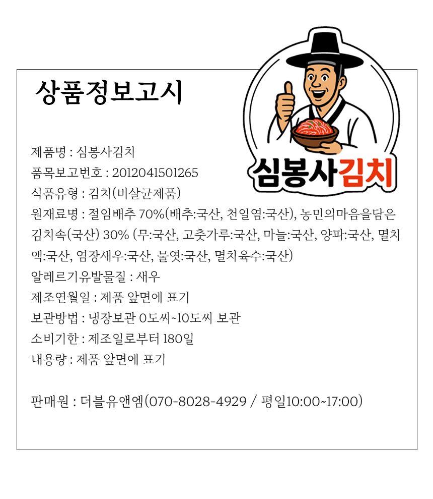 “심봉사김치”는 더블유앤엠이 보유한 상표권이 있는 고유브랜드입니다.
